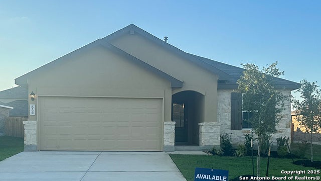 Remarks | $Introducing The Torre, a one-story home featured in our Steele Creek community in Cibolo, TX. This floor plan offers 3 classic exteriors, 2-car garage, and a full yard landscaping and irrigation package, ensuring that your home looks its best every single day. Inside this 3 bedroom, 2 bathroom home, you'll find 1442 square feet of open-concept living. A front foyer leads you to a blended dining area, gourmet kitchen, and living room, perfect for entertaining and every day living. Your kitchen includes quartz countertops, stainless steel appliances, gas cooking range, stylish subway tile backsplash and abundant cabinet storage space. The private main bedroom is located off the living room towards the back of the home and includes a connected ensuite bathroom with dual vanity sink, a garden bathtub and a spacious tiled walk in shower. Enjoy additional privacy with a separate door for the toilet and a walk-in closet with built in shelving. Your secondary bedrooms are located at the front of the home right off the foyer and all feature quality carpet flooring and a closet, and can be used as bedrooms, offices, workout spaces or other bonus rooms. The possibilities are endless with The Torre floor plan. Additional features include tall 9-foot ceilings, 2-inch faux wood blinds throughout the home, luxury vinyl plank flooring at entry, living room, kitchen, and dining area, ceramic tile in the bathrooms and utility room, and pre-plumb for water softener loop. You'll enjoy added security in your new home with our Home is Connected feature. Using one central hub that talks to all the devices in your home, you can control the lights, thermostat and locks, all from your cellular device. Relax outside on the covered patio (per plan) and enjoy full yard landscaping and full yard irrigation. This perfect starter home includes our HOME IS CONNECTED base package. Using one central hub that talks to all the devices in your home, you can control the lights, thermostat, locks and more all from your cellular device. |