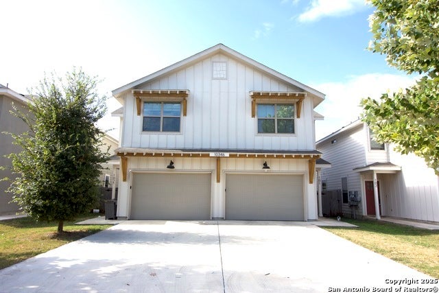 Like-new duplex in the gated community of Lynwood Village, just minutes from Lackland AFB, SeaWorld, and major highways. Built in 2020, this property offers a smart investment or house-hack opportunity. Each side features 3 bedrooms, 2.5 baths, a 1.5-car garage, granite counters, stainless steel appliances, tiled showers, hard flooring in common areas, foam insulation throughout, pre-plumbing for a water softener, and fenced yards. Both garages are equipped with electric car chargers for added convenience. One unit is leased at $1,645/month through May 2026, providing immediate income, while the other side is vacant and move-in ready-perfect for an owner-occupant or new tenant. This setup is especially appealing for VA buyers looking to live in one unit while offsetting costs by renting the other. Community amenities include a dog park, playground, basketball court, pavilion, and HOA-covered front yard lawn care. A rare blend of comfort, location, and rental potential in a secure gated community.
