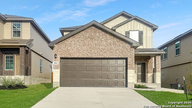 Step inside The Nicole plan, a two-story home featured at Stonehill in San Antonio, TX. Featuring 2 classic front exteriors, 4 bedrooms, 3 full baths and a 2-car garage, this floor plan is sure to turn heads. The Nicole offers 2473 square feet of comfortable living and includes a full bathroom and bedroom located right off the foyer that is perfect for guests. Continue down the hall to find an open concept plan with the family room opening to a gourmet kitchen and dining room. The kitchen includes quartz counter tops, stainless steel appliances, shaker style cabinetry and a spacious corner pantry. A kitchen island overlooks the living room and includes a deep, single basin sink and a breakfast bar, perfect for fast mornings on the go. The wide, inviting staircase leads to a spacious game room, utility room, main bedroom suite, two secondary bedrooms with carpet flooring and spacious closets and third full bathroom. Your private main bedroom features an attached ensuite bathroom built with plenty of storage space, a walk-in shower and a separate water closet for the toilet. The grand walk-in closet is a stand-out feature of The Nicole floor plan, complete with plenty of windows for natural lighting. Additional features of The Nicole include sheet vinyl flooring in entry, living room, and all wet areas, quartz counter tops in all bathrooms, and full yard landscaping and irrigation. This home includes our HOME IS CONNECTED base package. Using one central hub that talks to all the devices in your home, you can control the lights, thermostat and locks, all from your cellular device.