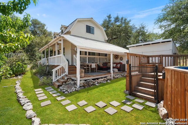 Charming Modern Barnhouse Retreat in Scenic Canyon Lake. This one-of-a-kind property combines rustic barn-style charm with upscale modern finishes, offering an exceptional opportunity for a vacation home, short-term rental investment, or full-time residence. Thoughtfully designed with 2 bedrooms and 1 luxurious bath, the home features a stylish open-concept layout, vibrant interiors, and high-end details throughout-including a rain shower, soaking tub, and a fully equipped kitchen. Set on a beautifully landscaped lot, the outdoor space is a private oasis complete with a pool, hot tub, outdoor shower, hammock, butterfly garden, and multiple lounging areas. Enjoy sweeping hill country views from the spacious living area or unwind on the welcoming front porch. Located just minutes from Canyon Lake, this turnkey property is ready to enjoy or generate income. Don't miss this rare blend of comfort, character, and location. POA Membership gets you access to four local private parks.