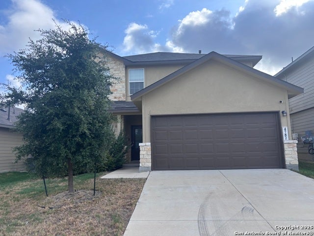 4782 Chalk Flats is perfectly situated in the highly sought after Riverstone at West Pointe community. This beautiful, two story home with 5 generously sized bedrooms with owner's retreat downstairs, 3.5 bathrooms and 2678 sf is well taken care of and in like- new condition! Featuring an open concept kitchen with stainless steel appliances, granite countertops, white subway tile backsplash, and angled kitchen island faces the large family room that is perfect for entertaining. The private downstairs main bedroom provides a tranquil escape and private haven for relaxation complete with a soaking tub, separate walk-in shower, double vanities and oversized walk-in closet. The second floor features a versatile loft filled with natural light, two full bathrooms and four spacious secondary bedrooms. Additional features include a covered porch and patio, tall 9 foot ceilings, 2 inch faux wood blinds, luxury vinyl plank flooring, ceramic tile in wet areas, plumbed for water softener, and full front/back irrigation system! To top it all off, the state of the art recreational facilities include a pool, gym, community center, park/playground, and so much more! It's time to make this house YOUR HOME!
