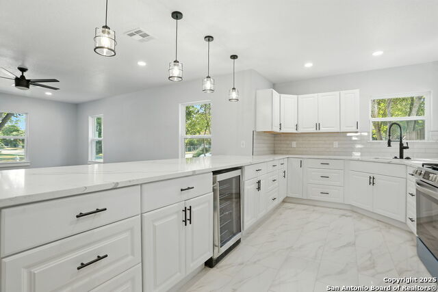 Welcome to 1555 W Lullwood, a stunning 3-bedroom, 2-bathroom home perfectly situated on a spacious corner lot in the sought-after Los Angeles Heights-Keystone neighborhood. This beautifully renovated corner lot blends modern upgrades with charming original details, offering the best of both worlds. Step inside and fall in love with the refinished original hardwood floors that bring warmth and character to the open-concept living space. The immaculate chef's kitchen is truly the heart of the home, featuring an oversized island, sleek quartz countertops, and a suite of stainless steel appliances-including a refrigerator, stove, and under-counter beverage fridge-perfect for cooking or entertaining. Every detail has been thoughtfully updated for peace of mind, with a brand-new HVAC system, upgraded plumbing, electrical wiring, all new fixtures, blown-cabinets, insulation, and new windows throughout. Both bathrooms have been beautifully modernized with quartz countertops and stylish finishes, offering a fresh and timeless look. A detached garage with electricity in the back gives you plenty of space for parking, storage, or even a future workshop. All of this is just minutes from Downtown San Antonio, the Pearl District, and major highways, making it a prime location for convenience, dining, and entertainment. Don't miss the chance to own this move-in ready gem in one of San Antonio's most desirable up-and-coming neighborhoods!