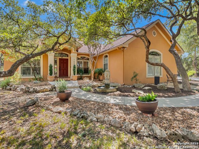 Welcome home to your tranquil escape in the heart of the Texas Hill Country. This impeccably clean and well-maintained property offers the perfect blend of functionality, charm, and serenity - all within the boundaries of a friendly community featuring private Guadalupe River access through the HOA park. Step inside and be greeted by an abundance of natural light that highlights the spacious layout and elegant stone flooring throughout the main living areas. Set up for either three bedrooms and an office or take advantage of the potential for a double office setup, this home easily accommodates both family life and work-from-home needs. At the heart of the home lies the stunning chef-inspired kitchen, designed for both everyday living and entertaining. Enjoy a large island that provides ample workspace and storage, perfect for preparing gourmet meals or gathering with guests. The breakfast area features huge windows that flood the space with light and offer sweeping views of the outdoors, truly bringing the outside in. Enjoy Texas evenings around your custom outdoor fireplace or gather with friends around the fire pit under the stars. The expansive outdoor living spaces are made for entertaining and peaceful relaxation. The fully fenced 2-acre lot is ideal for animals, and includes raised garden beds, a garden shed, and a workshop - everything you need for a self-sustaining lifestyle. Located within the prestigious Smithson Valley High School district, this home combines country comfort with convenient access to top-rated schools and amenities. Whether you're dreaming of a peaceful retreat, a hobby farm, or a place to simply enjoy wide-open spaces and nature, this home offers it all and more.