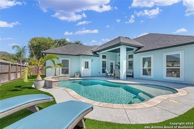 Remarks | $Meticulously maintained 2,812 sf. home with a tropical backyard. Relax and enjoy the low maintenance yard with a gorgeous pool, waterfall feature, covered patio and artificial turf yard. Open floorplan with primary bedroom on one side & the other 3 bedrooms with 2 full baths on the other side. Light & bright with coastal colors throughout. The grand kitchen offers a gas cooktop, decorative backsplash, custom cabinetry, quartz countertops, large island & huge pantry. Primary suite is spacious with tons of na |
