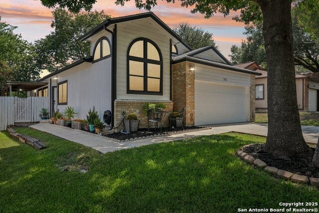 Our lender partner is offering to cover the entire downpayment and closing costs, up to $17,500, with competitive rates available in the 5% range. This inviting, move-in ready home features three bedrooms and two bathrooms, with soaring ceilings and a cozy fireplace in the living room. The thoughtful split master layout includes a spacious, unique master bathroom for added comfort. The interior boasts tile and vinyl flooring throughout-no carpet-for easy maintenance and modern appeal. Outside, the backyard is perfect for gatherings, offering a large covered porch and turf for effortless upkeep. The property also conveys with a playscape and refrigerator, adding to its convenience and charm.