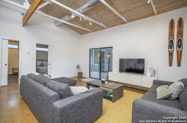 Interior | One Living Area, Liv/Din Combo, High Ceilings, Cable TV Available, High Speed Internet, Laundry in Kitchen |