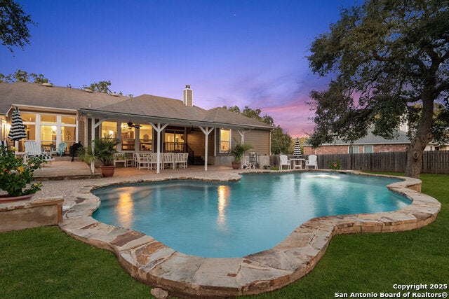 Here's your dream home in West Oak Estates - complete with a gorgeous pool, mature oak trees, and over half an acre of space. This one-story residence offers 4 bedrooms, 3 bathrooms, and 3,170 sq. ft. on a .77-acre lot, creating the perfect balance of comfort and room to grow. Step inside to find hardwood flooring, two spacious living areas, and a chef's kitchen with abundant granite counter space, ideal for family living and entertaining. The very large primary suite is a true retreat, with direct access to the pool area and a luxurious bath featuring a separate shower and his & hers closets. Out back, discover your own summer paradise: a large covered patio and a sparkling inground pool surrounded by mature oaks, offering both shade and privacy. With its expansive lot, thoughtful layout, and resort-style outdoor living, this home captures the best of West Oak Estates living.
