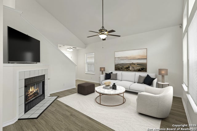 Welcome to this charming 3-bedroom, 2.5-bathroom home nestled in the gated community of Crossings at Quail Creek. Step inside to a bright and open living area featuring soaring ceilings, a cozy fireplace, and walls of windows that fill the space with natural light. The eat-in kitchen with breakfast nook is perfect for casual dining and entertaining. Upstairs, you'll find spacious bedrooms, including a comfortable primary suite. Enjoy a private backyard retreat with a covered patio-ideal for relaxing or hosting gatherings. Conveniently located near the Medical Center, Lackland AFB, USAA, plus shopping and dining along Bandera and Tezel Rd. Outdoor lovers will appreciate quick access to the Leon Creek Greenway Trail System.