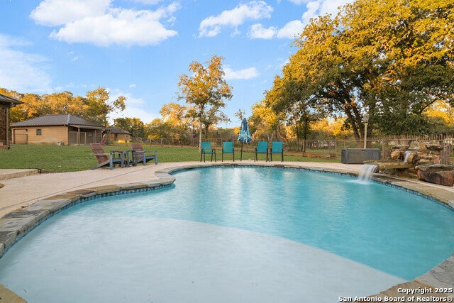 | Remarks | $- Welcome to this Magnificent Beautiful custom stone home with a durable metal roof situated on 3.23 acres in the peaceful Eden Crossing community in Adkins, TX. The interior features tile flooring throughout, two dining areas ideal for gatherings, and a versatile game room/office. A Florida room currently used as a gym adds additional flexibility. The chef-inspired kitchen includes an extended island, two sinks, double ovens, granite countertops, gas cooking, under-cabinet lighting, and abundant cabinet and counter space. A spacious utility room with sink and cabinetry adds convenience. The primary suite offers dual vanities, a soaking tub, walk-in shower, and a large walk-in closet, while secondary bedrooms are generously sized with walk-in closets. The home also features a full interior bar, making it perfect for entertaining. Outdoor living is exceptional with an extended covered patio, outdoor fireplace, full outdoor kitchen, and private swimming pool. The property includes a water well used for irrigation, helping maintain the beautiful grounds efficiently. Residents of Eden Crossing also enjoy access to a community pond with walking trails and regular neighborhood events, creating a welcoming and connected atmosphere while still offering the privacy of acreage living just minutes from San Antonio. |