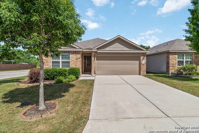Welcome to this beautifully maintained, one-story home nestled on a corner lot in New Braunfels, offering serene greenbelt views. Featuring an open-concept layout with soaring 10-foot ceilings, upgraded lighting and ceiling fans throughout-creating a bright, airy ambiance perfect for both daily living and entertaining.The kitchen is a true highlight, showcasing granite countertops, a custom tile backsplash, stainless steel appliances (including a brand-new dishwasher), a large island with seating for two, under-cabinet lighting, and a charming window above the sink. Enjoy outdoor living with a private, fenced backyard that includes a covered patio and a Rainbird sprinkler system for easy lawn maintenance. The spacious primary suite offers comfort and style with an ensuite bath featuring a separate tub and shower and large walk-in closet. Additional features include a fully insulated garage with its own ac unit, a garage door opener, large attic with a radiant barrier, and plumbed for a water softener. The home also boasts a newer 3-ton A/C system for energy-efficient comfort. Located just minutes from Fisher Park, walking and jogging trails, major highways, shopping, dining, and the charming downtown area of New Braunfels, this home combines convenience with tranquility. Plus, benefit from a favorable tax rate -lower than nearby San Antonio.