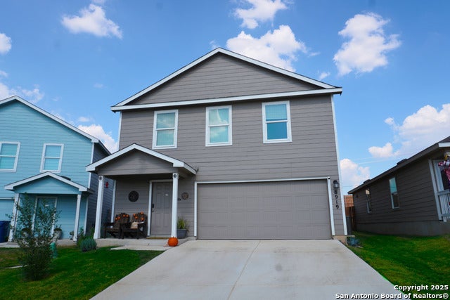 Welcome to your modern retreat in the sought-after Crescent Hills community by Lennar. Built in April 2024, this beautifully maintained two-story home offers 1,950 square feet of bright, open living space designed for both comfort and style. Featuring four bedrooms, two and a half baths, and thoughtful upgrades throughout, this home is perfect for modern living. Enjoy the privacy of no backyard neighbors, an airy open-concept layout, and a garage equipped with A/C-ideal for a home gym, studio, or extra living space. Upstairs, you'll find all four bedrooms and a spacious loft that can be used as a media room, office, or game area. Step outside to a landscaped backyard with charming garden details and a row of lavender plants along the side, adding a fragrant and peaceful touch to your outdoor space. Located directly across from Trader's Village, Crescent Hills offers resort-style amenities including a community pool, playground, and walking trails. This neighborhood is known for its well-kept homes, welcoming atmosphere, and convenient access to Loop 410 and I-35. Don't miss your chance to own this move-in-ready home in one of San Antonio's fastest-growing areas.