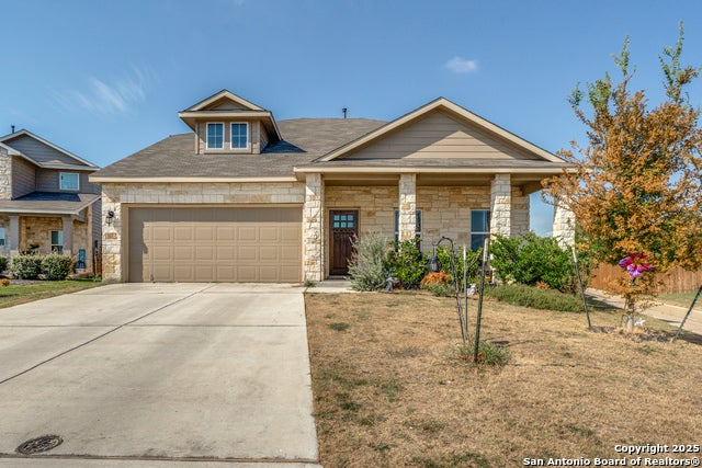 Welcome to this beautiful two-story home in Heather Glen which offers comfort, space, and functionality. With 4 bedrooms and 2.5 bathrooms, it's perfect for a variety of lifestyles. The living room's vaulted ceilings create an open, airy feel, while the kitchen features granite countertops, a tile backsplash, and stainless steel appliances-ideal for everyday living or entertaining. The first-floor primary suite includes dual vanities, a soaking tub, separate shower, and a spacious walk-in closet. Upstairs offers three large bedrooms and a full bath. Enjoy the huge 1/4-acre backyard with a covered patio, perfect for relaxing or outdoor fun. Located in Comal ISD, just minutes from Gruene, Landa Park, and Schlitterbahn, with community pool and playground access. Don't miss this one-schedule your showing today!