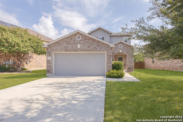 Welcome to 7650 Heavenly Arbor, nestled in the desirable Cross Creek community on San Antonio's Northwest side. This charming two-story home offers 3 bedrooms, 2.5 baths, and a versatile bonus room downstairs-perfect for an office, playroom, or flex space. The inviting open-concept layout showcases wood-look tile flooring throughout the main areas and a beautifully designed kitchen that exudes modern farmhouse style. Enjoy quartz countertops, subway tile backsplash, black hardware and fixtures, and a brand-new stainless steel stove-ideal for entertaining or cooking your favorite meals. Upstairs, you'll find all bedrooms along with a spacious loft area and a conveniently located laundry room, eliminating the hassle of carrying laundry up and down the stairs. The serene primary suite offers comfort and privacy, while the secondary bedrooms are well-sized for family or guests. Step outside to your private backyard oasis overlooking a peaceful greenbelt-perfect for relaxing on your patio and enjoying quiet evenings. Located just minutes from Alamo Ranch Shopping Center, Casablanca Theatre, HEB, and major highways including Loop 1604, Hwy 151, and FM 1560, this home combines comfort and convenience. Outside city limits-this property qualifies for USDA financing with $0 money down! Don't miss your opportunity to own this move-in ready home in one of the most sought-after areas of Northwest San Antonio.