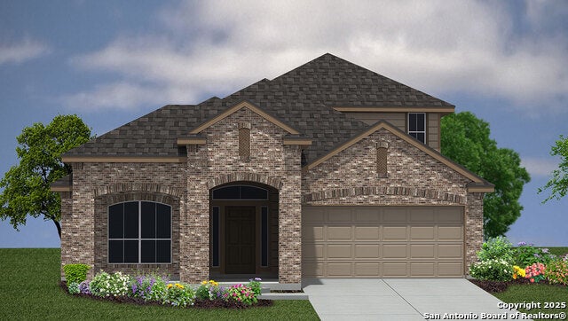 The Hondo is a two-story home featured at Riverstone at Westpointe in San Antonio, TX. Offering two classic front exterior designs, a spacious 2-car garage and a full yard landscaping and irrigation package, the Hondo is designed to be the perfect fit for you! Step inside this 4 bedroom, 3 bathroom home to find 2702 square feet of open-concept living. Whether you're cooking, enjoying a meal or entertaining, you'll never be far from the action with a beautifully blended living room, dining area and kitchen. Your gourmet kitchen is located at the back of the home with a deep single basin sink overlooking your spacious backyard. Additional kitchen features include gorgeous quartz countertops, a spacious kitchen island with plenty of working space and shaker style cabinets, stainless steel appliances, a natural gas cooking range and a spacious corner pantry. The private main bedroom suite is located off the kitchen and dining area and includes quality carpet flooring, large windows for plenty of natural light and a ceiling fan. Your attached main bathroom features dual vanity sinks, a tiled walk-in shower, shaker style cabinets, and an oversized walk-in closet. Your first story is complete with a dedicated office space, two secondary bedrooms with walk-in closets, a second full bathroom, a powder room and a utility room with tile floors. A versatile loft greets you at the top of the stairs and is a perfect entertainment area. Your guests will love their own bedroom and full bathroom located off the loft. Additional features include tall 9-foot ceilings, 2-inch faux wood blinds throughout the home, pre-plumb for water softener loop, natural gas and more! You'll enjoy added security in your new home with our Home is Connected features. Using one central hub that talks to all the devices in your home, you can control the lights, thermostat and locks, all from your cellular device.
