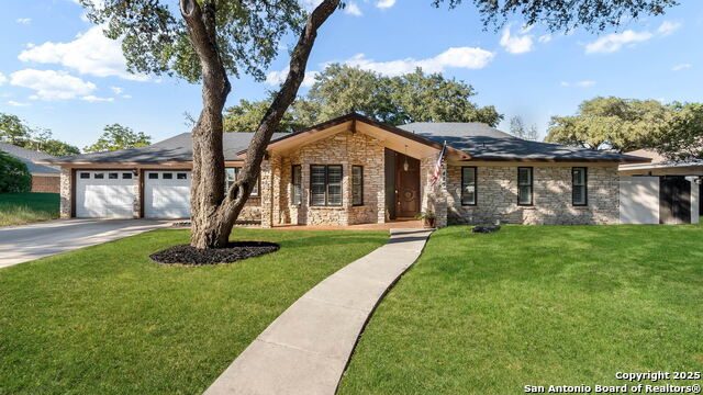 Welcome to your new chapter! Step into this beautifully updated mid-century ranch-style single-story home with a sparkling pool and spa in the heart of Windcrest. With 2,547 square feet of thoughtful design, this 4-bedroom, 2.5-bath retreat offers a perfect balance of open living, classic charm, and space to relax or entertain. The home features an airy layout with high ceilings, abundant natural light, and two spacious living areas, ideal for movie nights, gatherings, or quiet evenings by the fireplace. The open-flow kitchen includes a built-in breakfast nook/bar and spacious countertops, perfect for hosting family and friends. A oversized laundry room with a connecting half bath provides convenient access to the pool area. With newly replaced carpet that adds comfort and warmth throughout the bedrooms and living spaces. Outside, your private backyard oasis awaits with a pool, spa, and patio space, ideal for summer barbecues or relaxing mornings surrounded by mature trees and plenty of sunlight. This charming gem is located in Windcrest, where you'll enjoy nearby parks, golf course, walking trails, and easy access to shopping, dining, and major highways. This isn't just a house-it's the perfect place to start your new chapter. Come see why life feels better in Windcrest!
