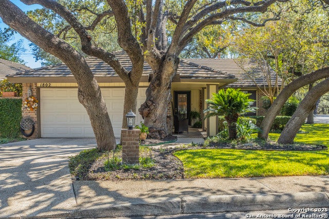 SITUATED IN ONE OF SAN ANTONIO'S MOST DESIRABLE NEIGHBORHOODS, THIS SITTERLE BUILT RESIDENCE FEATURING A TILE ROOF, CORNER TREED LOT, GARDEN LANDSCAPED YARD AND SOPHISTICATED INTERIOR DESIGN AWAITS A NEW OWNER! CONVENIENTLY LOCATED NEAR MCALLISTER PARK, THE AIRPORT, SHOPPING, DINING AND MAJOR EXPRESSWAYS. THE HOME OFFERS HIGH CEILINGS, OPEN DESIGN WITH INCREDIBLE VIEWS FROM EVERY LOCATION. RELAX BY A COZY LIVING ROOM FIREPLACE, CREATE A WONDERFUL MEAL IN YOUR GRANITE COUNTER KITCHEN WITH MODERN APPLIANCES AND GAS COOKING. THE FLOOR PLAN OFFERS A PRIMARY SPACIOUS BEDROOM WITH FULL BATH, 2 SECONDARY BEDROOMS, DINING ROOM, AND SECOND FULL BATH. STEP OUT ON TO YOUR GARDEN PATHS IN THE BACK YARD AND FIRE UP A GRILL, RELAX WITH A GLASS OF WINE OR CUP OF COFFEE AND ENJOY THE PRIVACY OF A WELL DESIGNED, LOW MAINTENANCE YARD. THE GARAGE OFFERS A WORK AREA, WATER SOFTENER, & ATTIC ACCESS. ADD A PLUS OF A SPRINKLER SYSTEM! THE COMMUNITY OF GARDENS OF OAK HOLLOW HAS A VOLUNTARY ASSOCIATION.