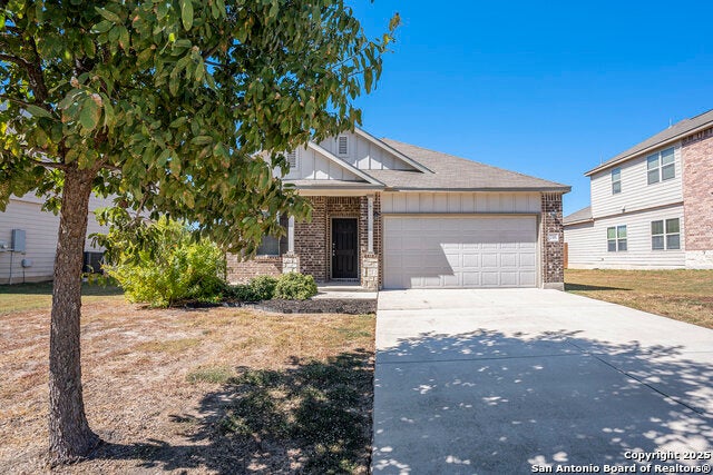 Welcome to this fantastic 3-bedroom, 2-bathroom home with a dedicated office, just minutes from downtown New Braunfels. This home features a functional open-concept living area. The kitchen is equipped with modern cabinets, granite countertops, and stainless steel appliances, along with an island sink and a breakfast bar, making it ideal for entertaining. The living room provides direct access to the fenced-in backyard, which is perfect for grilling and outdoor activities. The primary bedroom is a peaceful retreat, featuring charming bay windows and an ensuite with dual sinks, a garden tub, and a separate standing shower. Enjoy a prime location just seconds from the new NBISD High School, with easy access to the interstate and downtown shopping. Schedule your showing today!
