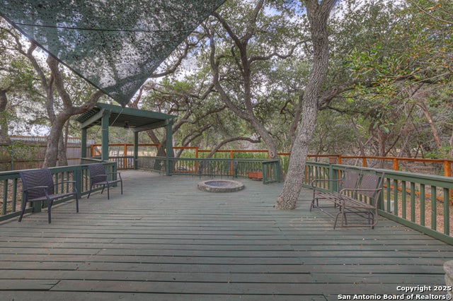Nestled in the heart of Canyon Lake Hills, this beautiful Hill Country-style home sits within a well-kept, lake-loving community known for its updated deed restrictions and pride of ownership. Enjoy peace of mind in a neighborhood that maintains its Hill Country charm with friendly guidelines and a welcoming atmosphere, just minutes from the water and local hot spots. Inside, an inviting open floor plan centers around a cozy living room fireplace, complemented by high ceilings, granite countertops, stainless steel appliances, and quality finishes throughout. The primary suite features a relaxing jetted tub, while a flexible fourth bedroom above the garage is perfect for guests, a home office, or a media room. Step outside to a spacious 700 sq. ft. back deck complete with a built-in fire pit-ideal for entertaining or unwinding on peaceful Hill Country evenings. The finished two-car garage includes an insulated door for added comfort and efficiency. Don't miss the charm, comfort, and thoughtful design that make this Canyon Lake gem truly special!